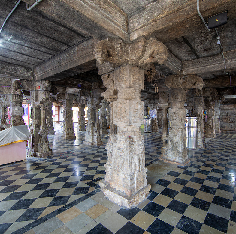 Post-and-lintel is one of the oldest construction systems in the world. It involves two upright members supporting a flat vertical members. This system is evident in the mantapa, where stone beams are held in place by two columns spaced a distance apart. Since the beams have to bear the load that rests on them as well as their own weight, they are in the form of single stone blocks. The brackets on top of the columns also provide a good bearing for the beams and help reduce the spans. Each bay is then capped by a ceiling of stone slabs that rest on these beams.