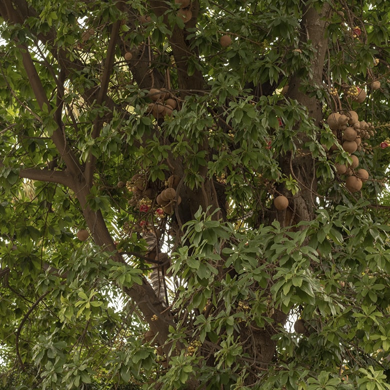 ಸೋಮೇಶ್ವರ ದೇವಾಲಯದ ಸಂಕೀರ್ಣವು ವಿವಿಧ ಪವಿತ್ರ ಮರಗಳನ್ನು ಹೊಂದಿದೆ. ಫಿರಂಗಿ ಮರ ಅಥವಾ ನಾಗ ಲಿಂಗ ಮರವು (ಕೌರೊಪಿಟಾ ಗಯಾನೆನ್ಸಿಸ್), ದಕ್ಷಿಣ ಅಮೆರಿಕಾದ ಸ್ಥಳೀಯ ಮರವಾಗಿದೆ. ಹೂವುಗಳು ಶಿವಲಿಂಗವನ್ನು ರಕ್ಷಿಸುವ ಪವಿತ್ರ ಹಾವಾದ ನಾಗನ ಹೆಡೆಯನ್ನು ಹೋಲುವುದರಿಂದ, ಇದನ್ನು ಪವಿತ್ರವೆಂದು ಪರಿಗಣಿಸಲಾಗುತ್ತದೆ. ಔಷಧೀಯ ಮೌಲ್ಯಗಳನ್ನು ಹೊಂದಿರುವುದರ ಜೊತೆಗೆ, ಆಲದ ಮರವನ್ನು (ಫೈಕಸ್ ರಿಲಿಜಿಯೋಸ) ಹಿಂದೂ, ಜೈನ ಹಾಗೂ ಬೌದ್ಧ ಧರ್ಮಗಳಲ್ಲಿ ಪವಿತ್ರವೆಂದು ಪರಿಗಣಿಸಲಾಗಿದೆ. ಬೋಧಿಯೆಂದೂ ಕರೆಯಲ್ಪಡುವ ಈ ಮರದ ಅಡಿಯಲ್ಲೇ ಬುದ್ಧನಿಗೆ ಜ್ಞಾನೋದಯವಾಯಿತೆಂಬ ನಂಬಿಕೆ ಇದೆ. ಬಿಲ್ವ ಮರವು (ಏಗಲ್ ಮಾರ್ಮೆಲೋಸ್) ಭಾರತ, ಶ್ರೀಲಂಕಾ, ಬಾಂಗ್ಲಾದೇಶ, ಪಾಕಿಸ್ತಾನ ಮತ್ತು ಆಗ್ನೇಯ ಏಷ್ಯಾದಲ್ಲಿ ಬೆಳೆಯುತ್ತದೆ. ಶಿವನಿಗೆ ಈ ಮರದ ಬಗ್ಗೆ ಒಲವು ಇರುವುದರಿಂದ, ಅನೇಕ ಶಿವ ದೇವಾಲಯಗಳಲ್ಲಿ ಈ ಮರ ಇರುತ್ತದೆ. ತ್ರಿಪರ್ಣಕ ಎಲೆಗಳನ್ನು (ಮೂರು ಎಲೆಗಳ ಸಣ್ಣ ತೆಳು ರೆಂಬೆಯನ್ನು) ಹೊಂದಿದ ಮರದ ಎಲೆಗಳು ಶಿವನ ಮೂರು ಕಣ್ಣುಗಳನ್ನು ಪ್ರತಿನಿಧಿಸುತ್ತವೆ. ಈ ಮರವನ್ನು ಕಲ್ಲಿನ ಸೇಬು/ಮರಸೇಬು ಅಥವಾ ಬೇಲದ ಮರವೆಂದೂ ಕರೆಯುತ್ತಾರೆ.