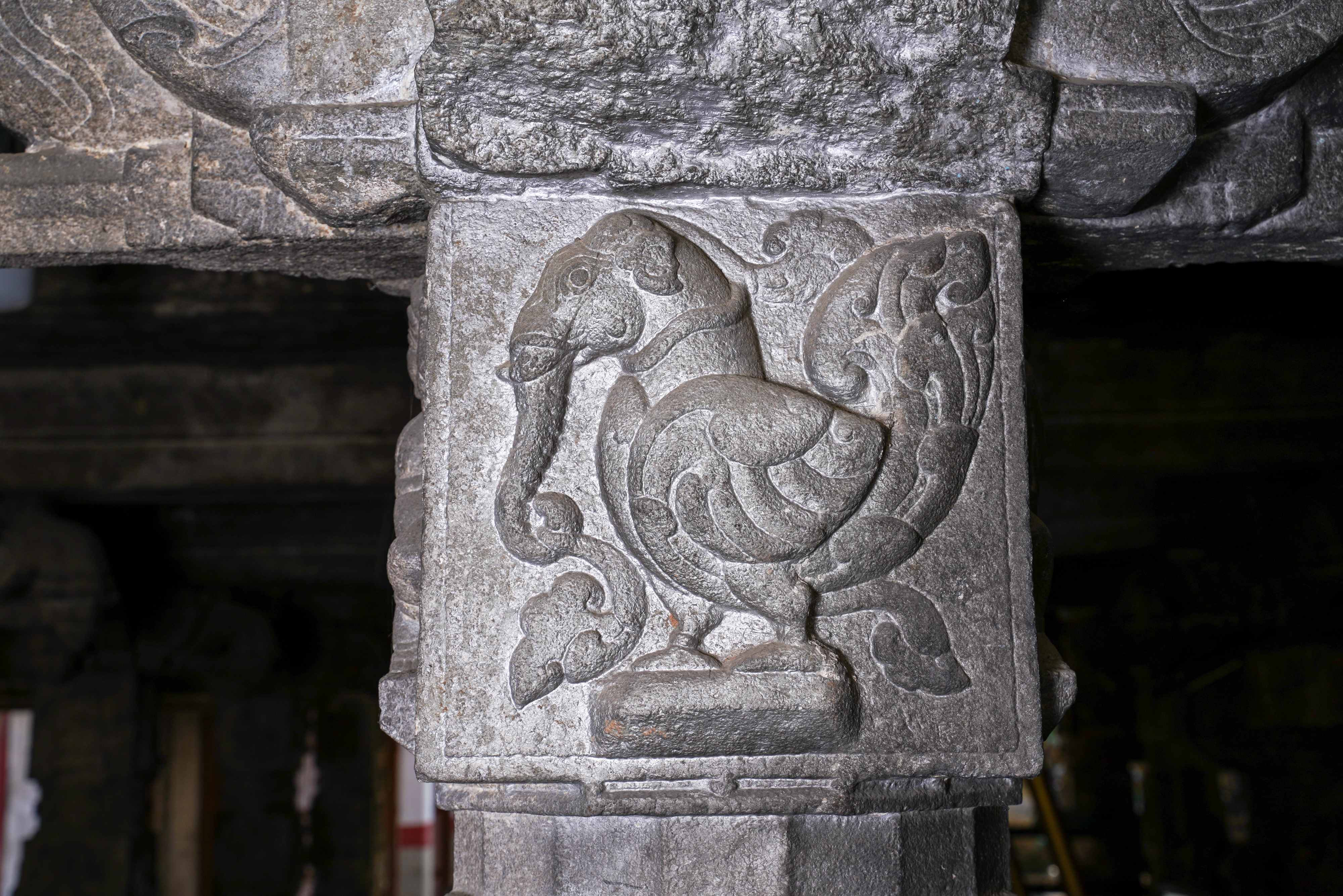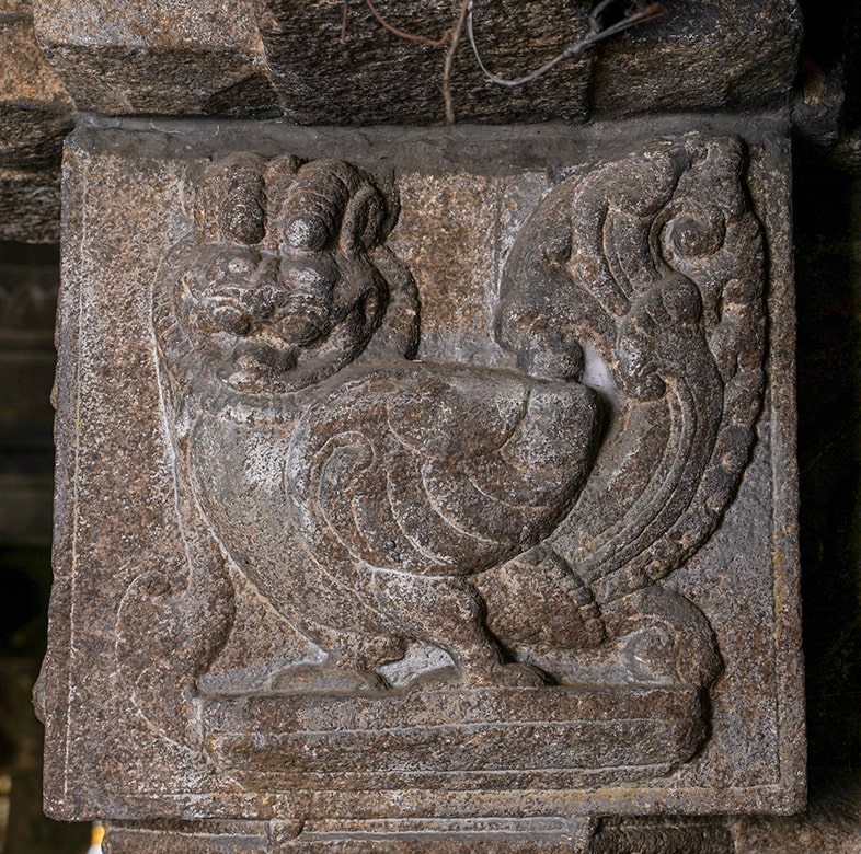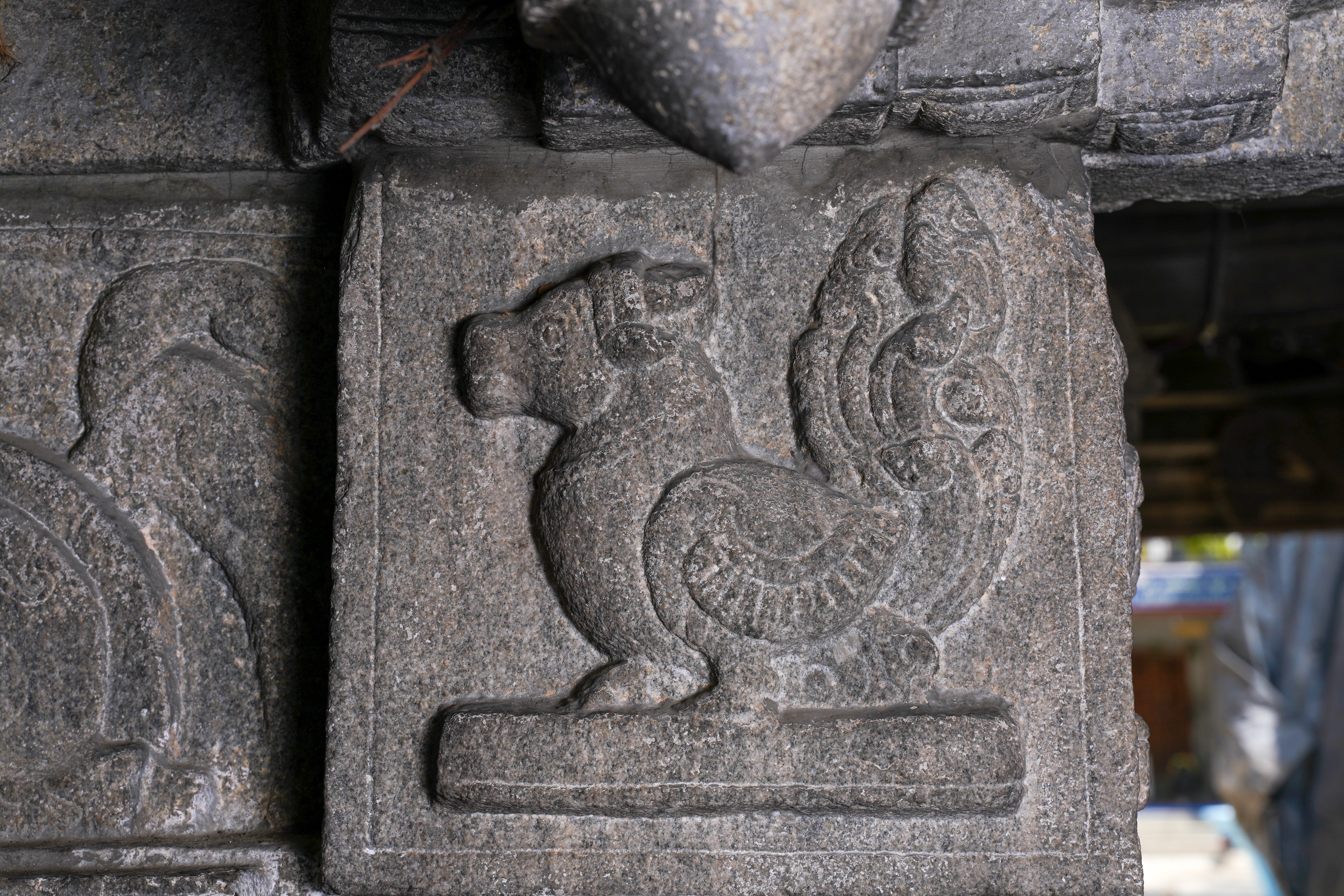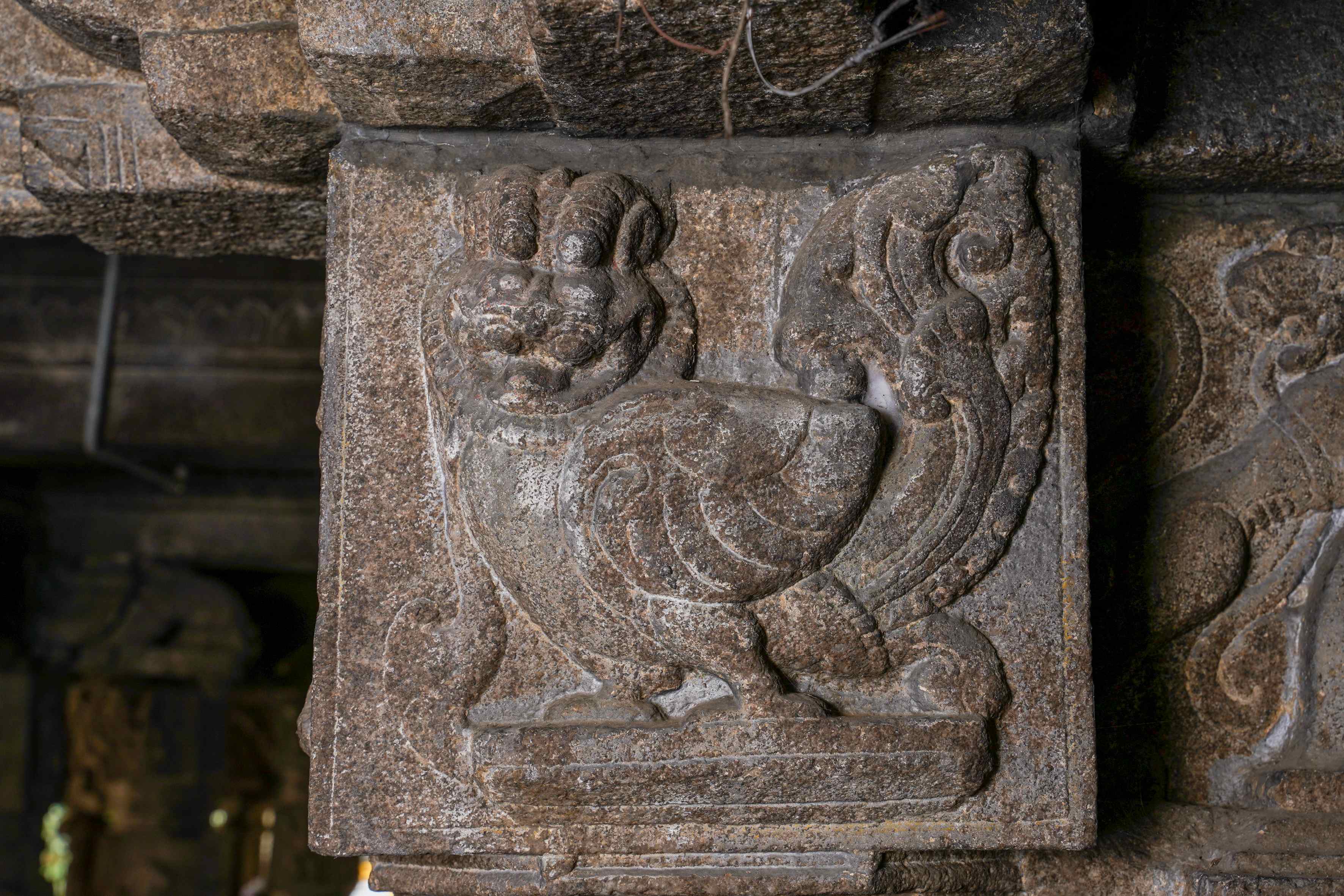 ಎರಡು ಅಥವಾ ಹೆಚ್ಚು ವಿಭಿನ್ನ ಪ್ರಾಣಿಗಳ ವೈಶಿಷ್ಟ್ಯಗಳನ್ನು ಒಗ್ಗೂಡಿಸಲಾದ ಪೌರಾಣಿಕ ಕಾಲ್ಪನಿಕ ಜೀವಿಗಳು ಪ್ರಪಂಚದ ಎಲ್ಲಾ ಪ್ರಾಚೀನ ಸಂಸ್ಕೃತಿಗಳಲ್ಲಿ ಕಂಡುಬರುತ್ತವೆ. ದೇವಾಲಯದ ಗೋಡೆಗಳು ಮತ್ತು ಸ್ತಂಭಗಳ ಮೇಲೆ ಇಹಾಮ್ರ್ಗ, ಯಾಳಿ, ವ್ಯಾಲ, ವಿದಲ ಎಂದು ಕರೆಯಲ್ಪಡುವ ಹಲವಾರು ಮಿಶ್ರತಳಿ ಜೀವಿಗಳನ್ನು ಕೆತ್ತಲಾಗಿದೆ. ಅಲಂಕಾರಿಕ ಮಕರ, ಮೂರು ತಲೆಗಳನ್ನು ಹೊಂದಿರುವ ಬಾತುಕೋಳಿ, ಸಿಂಹದ ಮುಖ ಮತ್ತು ಪಕ್ಷಿಯ ದೇಹವನ್ನು ಹೊಂದಿರುವ ಜೀವಿ, ಮಾನವ ಮುಖ-ಪಕ್ಷಿ ದೇಹಸಂಯೋಜನೆ, ನಾಗರ ತಲೆಯ ಪಕ್ಷಿ, ಹಸು ಮತ್ತು ಒಂಟೆ ತಲೆಯ ಪಕ್ಷಿಗಳು, ಆನೆ ಪಕ್ಷಿಗಿಂತ ಹೆಚ್ಚಾಗಿ, ಕಡಲ ಹಸು ಯಂತೆ ಕಾಣುವ ಪ್ರಾಣಿ. ಈ ಜೀವಿಗಳು ದೇವಾಲಯದಲ್ಲಿನ ಶಿಲ್ಪಗಳಿಗೆ ಅನಿರೀಕ್ಷಿತತೆಯ ಉಲ್ಲಾಸಮಯ, ವಿನೋದದ ಅರ್ಥವನ್ನು ಸೃಷ್ಟಿಸುತ್ತದೆ.