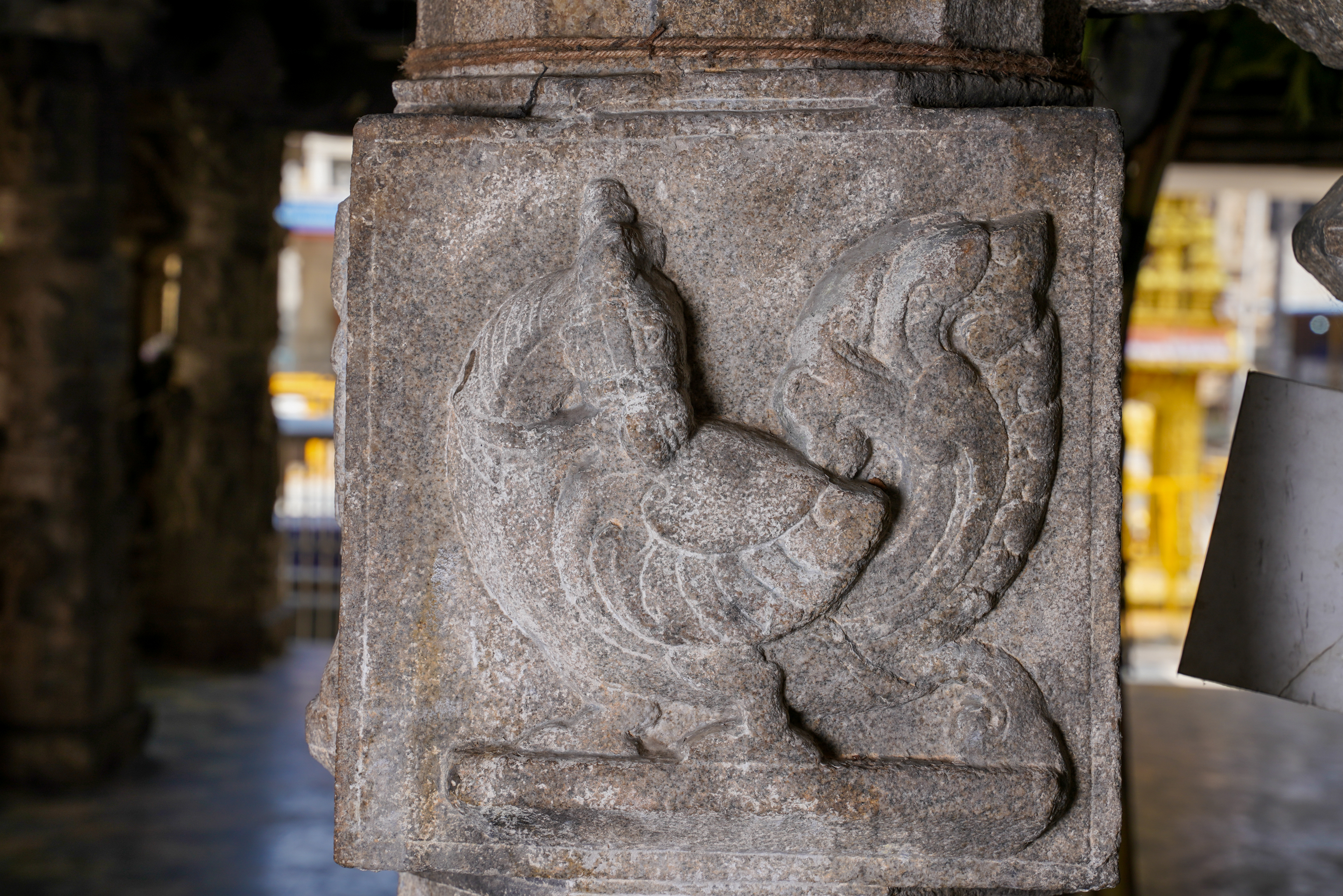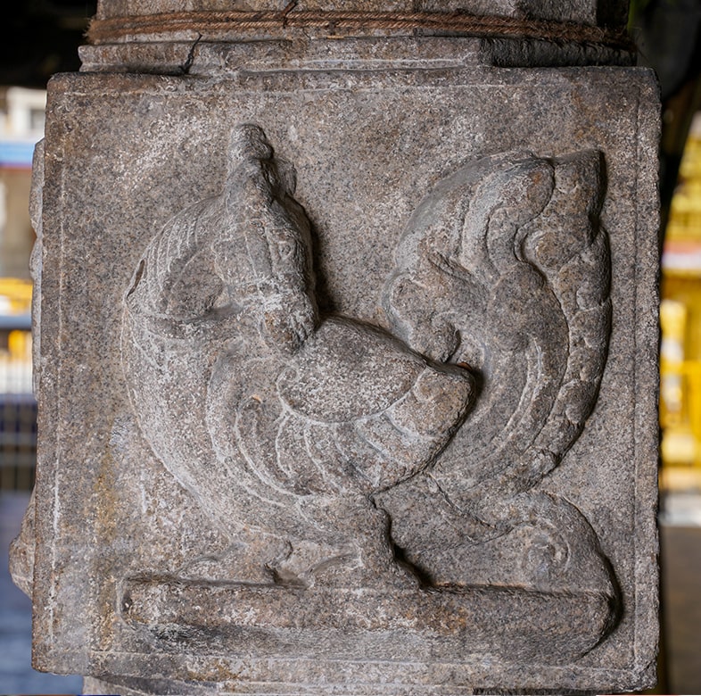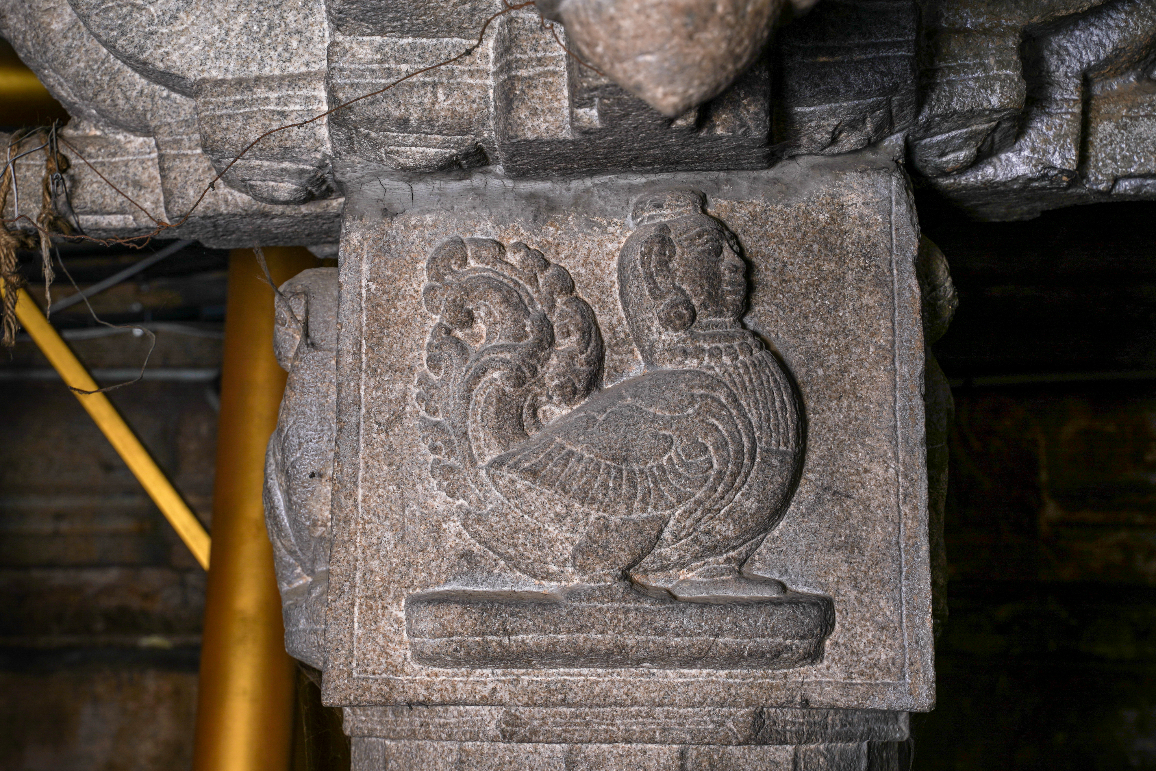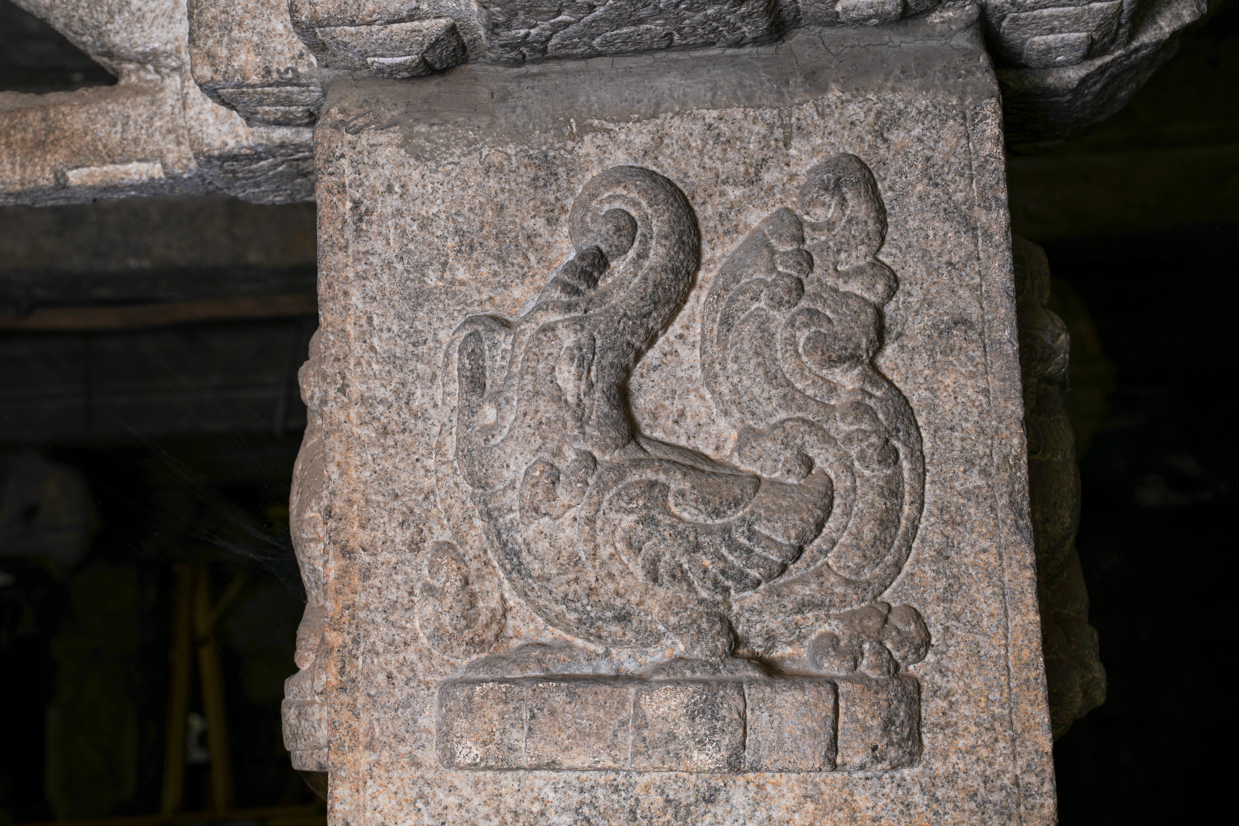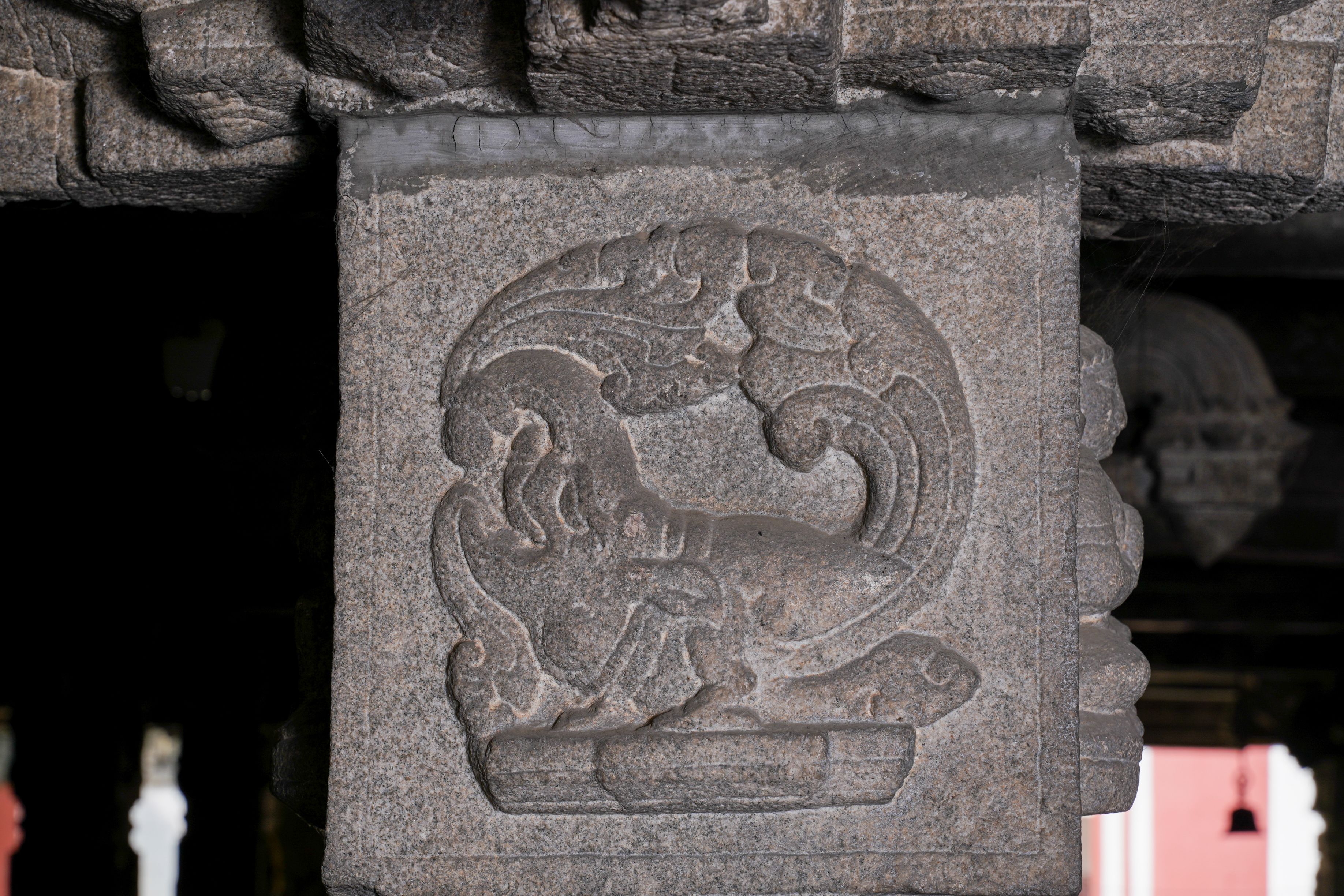 ಎರಡು ಅಥವಾ ಹೆಚ್ಚು ವಿಭಿನ್ನ ಪ್ರಾಣಿಗಳ ವೈಶಿಷ್ಟ್ಯಗಳನ್ನು ಒಗ್ಗೂಡಿಸಲಾದ ಪೌರಾಣಿಕ ಕಾಲ್ಪನಿಕ ಜೀವಿಗಳು ಪ್ರಪಂಚದ ಎಲ್ಲಾ ಪ್ರಾಚೀನ ಸಂಸ್ಕೃತಿಗಳಲ್ಲಿ ಕಂಡುಬರುತ್ತವೆ. ದೇವಾಲಯದ ಗೋಡೆಗಳು ಮತ್ತು ಸ್ತಂಭಗಳ ಮೇಲೆ ಇಹಾಮ್ರ್ಗ, ಯಾಳಿ, ವ್ಯಾಲ, ವಿದಲ ಎಂದು ಕರೆಯಲ್ಪಡುವ ಹಲವಾರು ಮಿಶ್ರತಳಿ ಜೀವಿಗಳನ್ನು ಕೆತ್ತಲಾಗಿದೆ. ಅಲಂಕಾರಿಕ ಮಕರ, ಮೂರು ತಲೆಗಳನ್ನು ಹೊಂದಿರುವ ಬಾತುಕೋಳಿ, ಸಿಂಹದ ಮುಖ ಮತ್ತು ಪಕ್ಷಿಯ ದೇಹವನ್ನು ಹೊಂದಿರುವ ಜೀವಿ, ಮಾನವ ಮುಖ-ಪಕ್ಷಿ ದೇಹಸಂಯೋಜನೆ, ನಾಗರ ತಲೆಯ ಪಕ್ಷಿ, ಹಸು ಮತ್ತು ಒಂಟೆ ತಲೆಯ ಪಕ್ಷಿಗಳು, ಆನೆ ಪಕ್ಷಿಗಿಂತ ಹೆಚ್ಚಾಗಿ, ಕಡಲ ಹಸು ಯಂತೆ ಕಾಣುವ ಪ್ರಾಣಿ. ಈ ಜೀವಿಗಳು ದೇವಾಲಯದಲ್ಲಿನ ಶಿಲ್ಪಗಳಿಗೆ ಅನಿರೀಕ್ಷಿತತೆಯ ಉಲ್ಲಾಸಮಯ, ವಿನೋದದ ಅರ್ಥವನ್ನು ಸೃಷ್ಟಿಸುತ್ತದೆ.