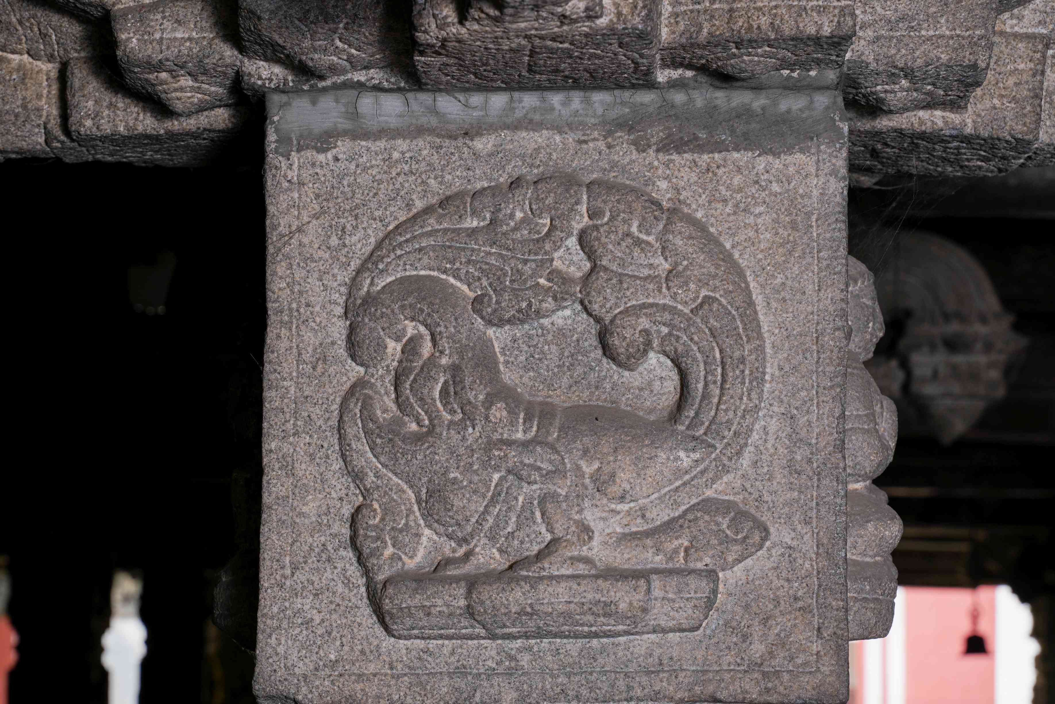 Animals mingle with gods and humans on the pillars and walls of the temple, and.