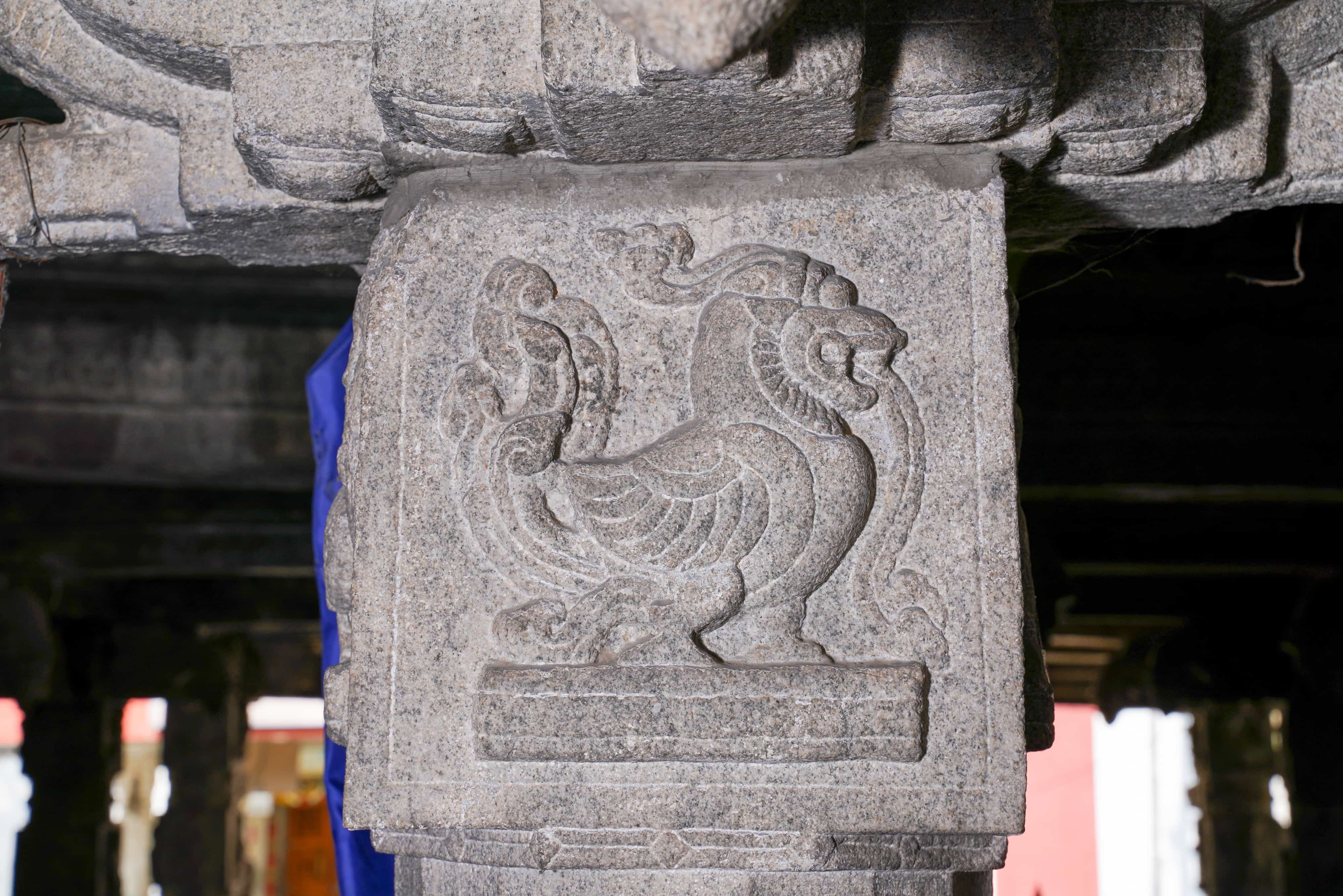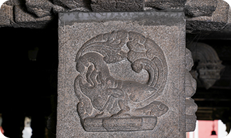 ದೇವಾಲಯದ ಕಂಭಗಳು ಮತ್ತು ಗೋಡೆಗಳ ಮೇಲೆ ಮತ್ತು ಅದರ ಗೋಪುರ ಮತ್ತು ವಿಮಾನದ ಮೇಲೆ, ದೇವರು ಮತ್ತು ಮನುಷ್ಯರೊಂದಿಗೆ ಪ್ರಾಣಿಗಳು ಬೆರೆಯುತ್ತವೆ.