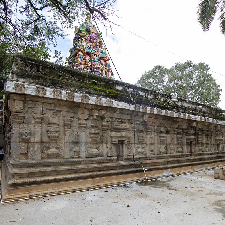 ಇತಿಹಾಸಕಾರ ಡಾ.ಎಸ್.ಕೆ.ಅರುಣಿ ಅವರ ಪ್ರಕಾರ, ಒಳಗಿನ ಗರ್ಭಗುಡಿಯು ಸುಮಾರು 10-12ನೇ ಶತಮಾನಗಳಲ್ಲಿ ಚೋಳರು ಈ ಪ್ರದೇಶವನ್ನು ಆಳುತ್ತಿದ್ದಾಗ ನಿರ್ಮಾಣ ಮಾಡಲಾಗಿದೆ. ಇದು ಸರಿಸುಮಾರು 2.5 ಮೀ x 2.5 ಮೀ ಅಳತೆಯ ಕಲ್ಲಿನ/ಇಟ್ಟಿಗೆಯ ತ್ರಿಕೋನ ಕಂಸದ ಛಾವಣಿಯನ್ನು ಹೊಂದಿದೆ. ವಿಮಾನವು ನೇರವಾಗಿ ಗರ್ಭಗುಡಿಯ ಮೇಲಿರುವ ಮೆಟ್ಟಿಲು ಗೋಪುರವಾಗಿದ್ದು, ಇದು ಛಾವಣಿಯಿಂದ ಸುಮಾರು 6.7 ಮೀ ಎತ್ತರದಲ್ಲಿದೆ. ಗೋಪುರವು ಇಟ್ಟಿಗೆ ಮತ್ತು ಸುಣ್ಣದ ಗಾರೆಗಳ ಟೊಳ್ಳಾದ ರಚನೆಯಾಗಿದ್ದು, ತಿಳಿಗಚ್ಚು ಶಿಲ್ಪಗಳಿಂದ ಅಲಂಕರಿಸಲ್ಪಟ್ಟಿದೆ. ಮೂರನೆಯ ತಲ ಅಥವಾ ಕಥನದ ನಂತರ, ವಿಮಾನವು ಅಷ್ಟಭುಜಾಕೃತಿಯ ರೂಪವನ್ನು ಪಡೆಯುತ್ತದೆ.
