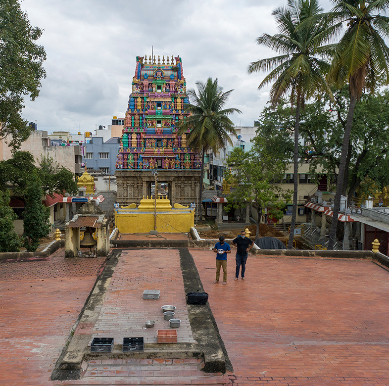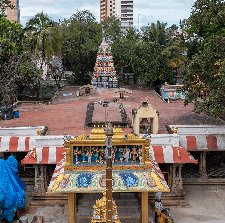 ಒಂದು ಆಧಾರ ತೊಲೆ ಅಥವಾ ಗೋಡೆಯಿಂದ ಇನ್ನೊಂದು ಆಧಾರ ತೊಲೆ ಅಥವಾ ಗೋಡೆಯವರೆಗೆ ಹರಡಿರುವ, ಅಡ್ಡಡ್ಡಲಾಗಿ ಇರಿಸಲಾದ ಸಮತಟ್ಟಾದ ಕಲ್ಲಿನ ಚಪ್ಪಡಿಗಳಿರುವ ಸಮತಟ್ಟಾದ ಛಾವಣಿ ವ್ಯವಸ್ಥೆಯನ್ನು ಸೋಮೇಶ್ವರ ದೇಗುಲದಲ್ಲಿ ಬಳಸಲಾಗಿದೆ (ಪೋಸ್ಟ್ ಹಾಗೂ ದ್ವಾರದ ಮೇಲೆ ಹಾಕುವ ಹಾಸುಗಲ್ಲಿನ ನಿರ್ಮಾಣ ವ್ಯವಸ್ಥೆಯ ವಿಭಾಗವನ್ನು ನೋಡಿ). ಮಂಟಪದ ಕೇಂದ್ರ ಹಜಾರವು ಸಮತಟ್ಟಾದ ಮೇಲ್ಛಾವಣಿಯಿಂದ ಕೂಡಿದ್ದು, ಸಭಾಂಗಣದ ಉಳಿದ ಭಾಗಗಳಿಗಿಂತ ಎತ್ತರಕ್ಕೆ ಅದನ್ನು ಏರಿಸಲಾಗಿದೆ. ಸುಣ್ಣದ ಸುರ್ಖಿ (ಸುಣ್ಣದ ಕಾಂಕ್ರೀಟ್) ಪದರವನ್ನು ನಂತರ ಸಮತಟ್ಟಾದ ಕಲ್ಲುಗಳ ಮೇಲೆ ಹಾಕಿ, ಮಳೆನೀರನ್ನು ಪರಿಣಾಮಕಾರಿಯಾಗಿ ಹರಿಸುವುದಕ್ಕಾಗಿ, ಸಂರಚನೆಯ ಅಂಚಿನ ಕಡೆಗೆ ಇಳಿಜಾರನ್ನು ಮಾಡಲಾಗಿರುತ್ತದೆ. ಕೊನೆಗೆ, ಇದರ ಮೇಲೆ ಮಣ್ಣಿನ ಹೆಂಚುಗಳನ್ನು ಇರಿಸಲಾಗುತ್ತದೆ. ಗರ್ಭಗುಡಿಯ ಮೇಲಿರುವ ಇಟ್ಟಿಗೆ ಮತ್ತು ಗಾರೆಗಳ ಪಿರಮಿಡ್ ಆಕಾರದ ವಿಮಾನದ ಮೇಲೆ ಒತ್ತು ನೀಡಲು ಈ ಸಮತಟ್ಟಾದ ಮೇಲ್ಛಾವಣಿಯು ಅನುವು ಮಾಡಿಕೊಡುತ್ತದೆ. ಗೋಪುರವು, ಮೆಟ್ಟಿಲುಗಳ ಗೋಪುರದ ರೂಪದಲ್ಲೂ ಇದ್ದು,, ಶಾಲಾ ಮೇಲ್ಛಾವಣಿಯೆಂದೂ ಕರೆಯುವ ಉರಲೆಯಾಕಾರದ ಕಾಮನು ಮೇಲ್ಛಾವಣಿಯನ್ನು ಕಳಶಪ್ರಾಯವಾಗಿ ಹೊಂದಿದೆ. ಇಲ್ಲಿ, ನಡುವೆ ಬರುವ ಮಹಡಿಗಳನ್ನು ಮದ್ರಾಸ್ ತಾರಸಿಗಳ ಸಾಂಪ್ರದಾಯಿಕ ವ್ಯವಸ್ಥೆಯನ್ನು ಬಳಸಿ ನಿರ್ಮಿಸಲಾಗಿದೆ.