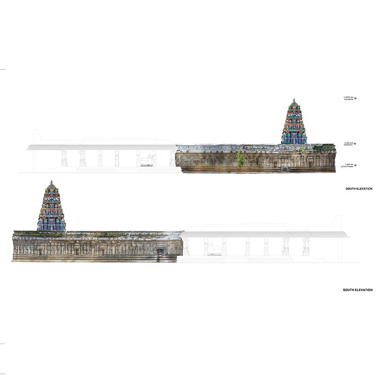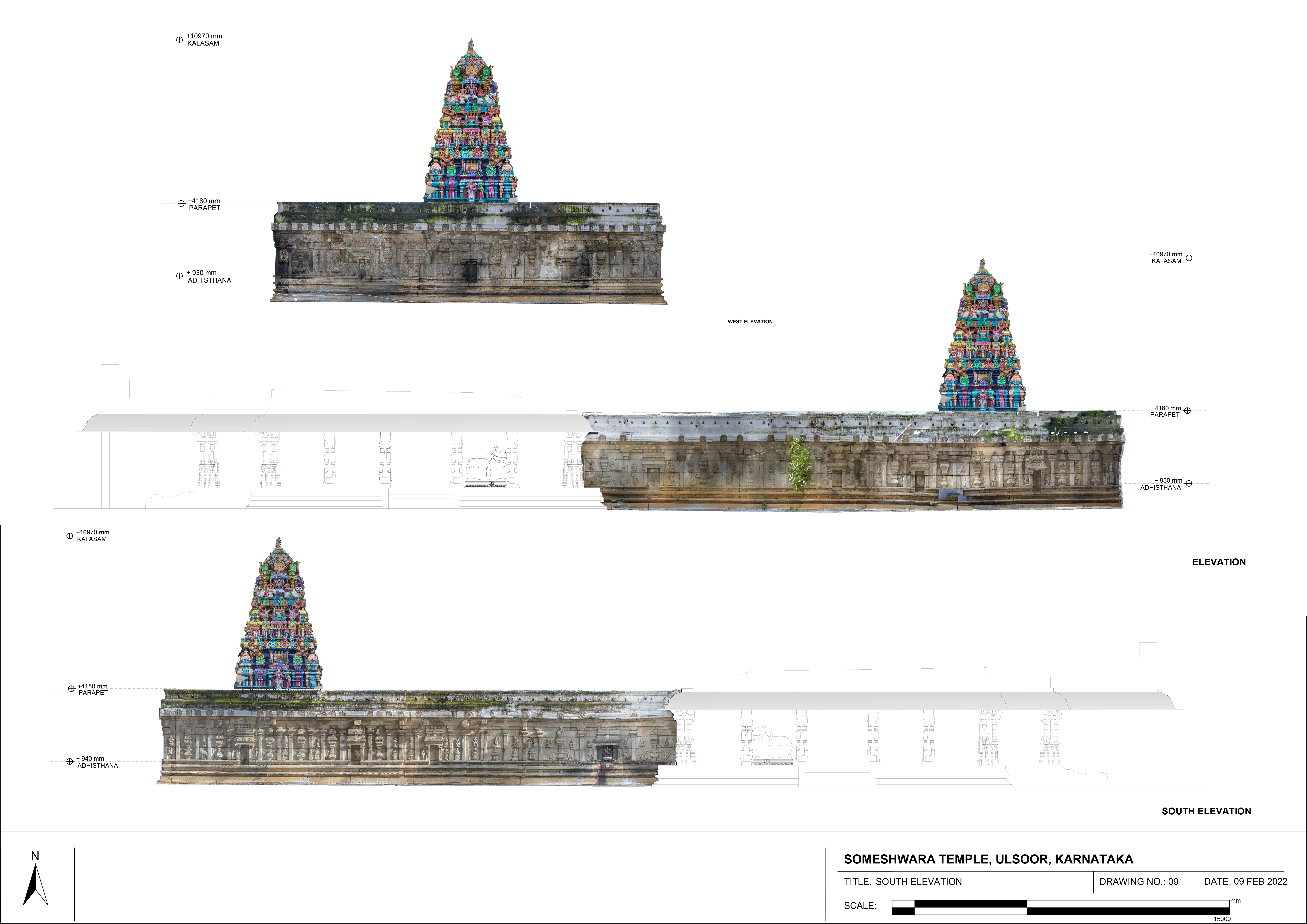 ಕ್ಷೇತ್ರಕಾರ್ಯದಿಂದ ವಾಸ್ತುಶಿಲ್ಪದ ಯೋಜನೆಗಳು, ವಿಭಾಗಗಳು ಮತ್ತು ಎತ್ತರಗಳ ಒಂದು ಸಮೂಹ/ಸಮುಚ್ಛಯವನ್ನು ಸಿದ್ಧಪಡಿಸಲಾಗಿದೆ. ಮೂಲ ಕೈಪಿಡಿ ಹಾಗೂ ಲೇಸರ್ ಅಳತೆ ಉಪಕರಣಗಳನ್ನು ಬಳಸಿಕೊಂಡು ದೇವಾಲಯದ ವಿವಿಧ ಸ್ಥಳಗಳನ್ನು ಚಿತ್ರಿಸಿ, ಅಳತೆ ಮಾಡಲಾಗಿದೆ. ನಂತರ ಇವುಗಳನ್ನು ಫೋಟೋಗ್ರಾಮೆಟ್ರಿಯಿಂದ ಪಡೆದ ದೃಶ್ಯ ಚಿತ್ರಣದೊಂದಿಗೆ ಸಂಯೋಜಿಸಲಾಯಿತು.